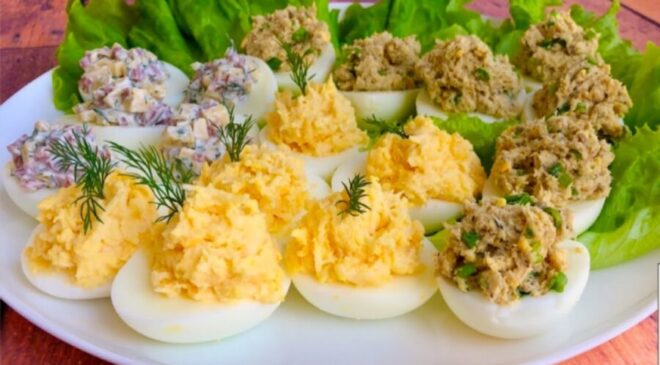 Viesi būs sajūsmā: vienkārši pagatavojamas pildītas olas svētku galdam ar 3 izcili garšīgiem pildījumiem