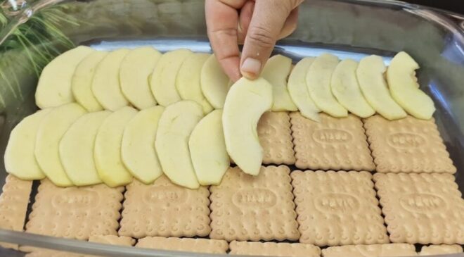 Vienkārši pārklājiet cepumus ar diviem āboliem: sulīgs deserts tikai 15 minūtēs, kas garšo labāk par smalkmaizītēm