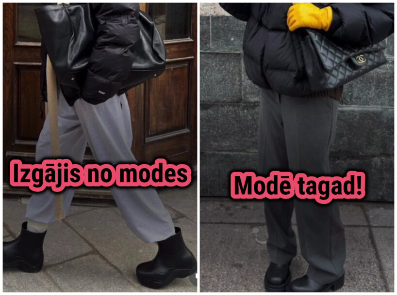 “Zābaki un sporta bikses pirms dažām sezonām bija ļoti, ļoti moderns komplekts. Tomēr tagad sporta bikšu vietā es iesaku izvēlieties siltas, brīvas bikses — tās izskatās ļoti stilīgi un ļoti moderni,” viņš saka.