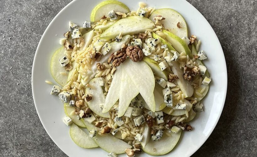 Salāti ar bumbieri, gorgonzolas sieru un valriekstiem
