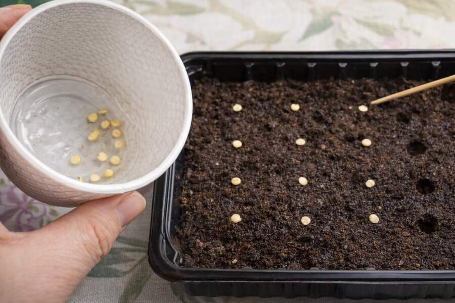 Lai nodrošinātu ideālu startu, pirms sēšanas samitriniet augsni ar karstu ūdeni (bet ne verdošu!), lai to sasildītu. Pēc sējas traukus obligāti novietojiet siltumā – pie radiatoriem vai uz speciāliem elektriskajiem apsildes paklājiņiem. Siltums no apakšas stimulē sakņu sistēmas attīstību un nodrošina ātru un vienmērīgu dīgšanu.