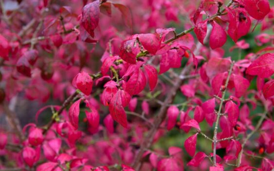 Dekoratīvais segliņš (Euonymus alatus) – šim augam ir intensīvi sarkans rudens tonis, tas izskatās ārkārtīgi izteiksmīgi pat nelielā dārzā.