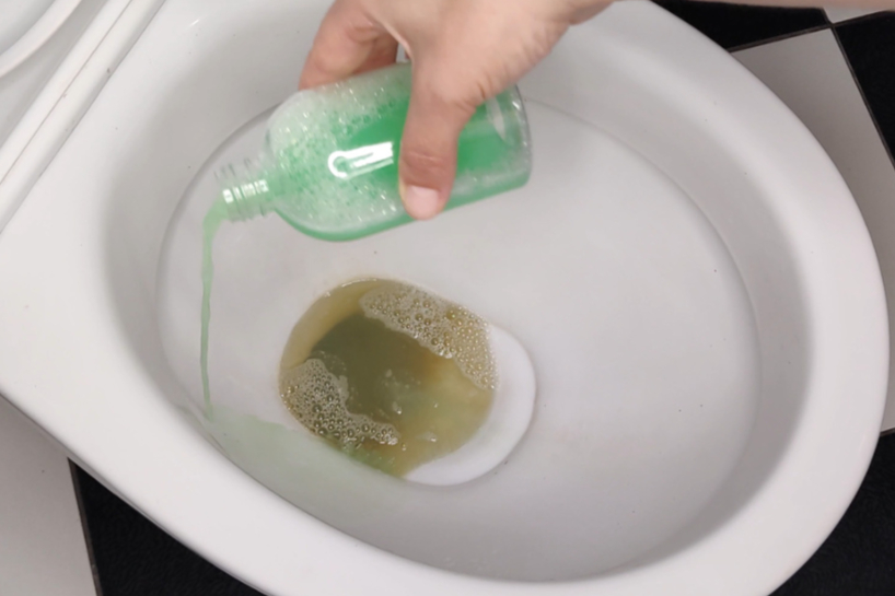 2.Ielejiet nedaudz līdzekļa tualetes podā, aptuveni pusglāzi.