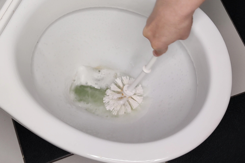 3.Ar tualetes birsti izklājiet šķidrumu pa iekšējām sienām un zem apmales, kur parasti sakrājas visvairāk netīrumu un rūsas.