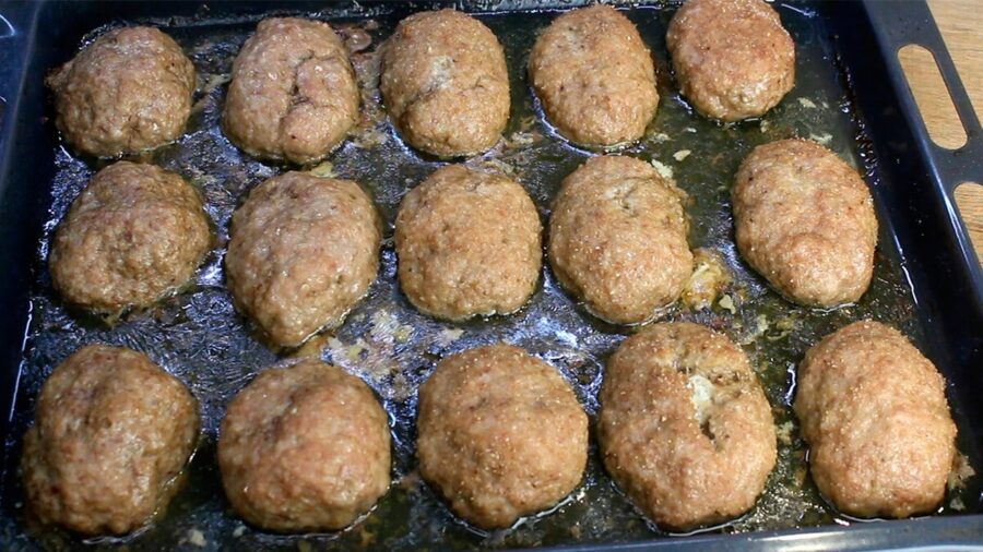 Uzkarsējiet cepeškrāsni līdz 200 grādiem pēc Celsija (400 grādiem pēc Fārenheita) — tas ir svarīgi, cepeškrāsnij jābūt karstai! Novietojiet cepšanas pannu uz vidējā restītes. Cepiet kotletes 25–30 minūtes. Pēc 15 minūtēm uzmanīgi apgrieziet katru kotleti ar lāpstiņu, lai nodrošinātu vienmērīgu apbrūnēšanu no visām pusēm. Vienkārši pagatavojams, vai ne?