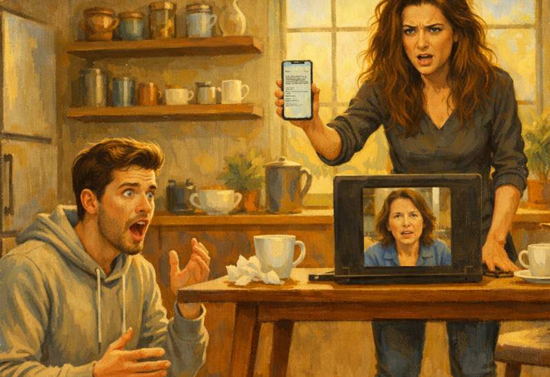 “Pārskaitījums: 800,00 EUR. Saņēmējs: Olga K. Ziņa: Olga, atgriežu jums dēlu kopā ar jūsu ikmēneša dāvanu. Sagaidiet investoru. Atslēgas atstāšu pastkastītē.”