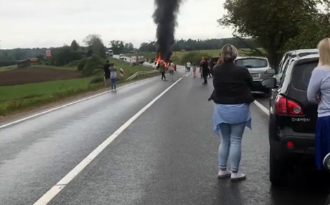 Ap plkst.13.30 policijā saņemta informācija par to, ka Vecpils pagastā uz autoceļa Rīga – Liepāja notikusi divu smago automašīnu sadursme. Viena no automašīnām ir aizdegusies.