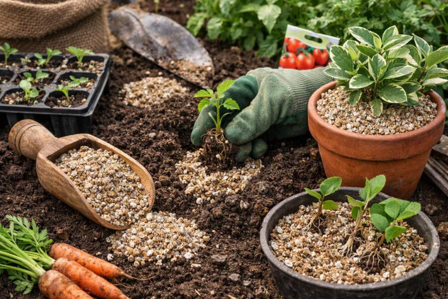 Rada apstākļus sējeņu un spraudeņu dīgšanai un apsakņošanai, īpaši sākotnējā attīstības stadijā. Šajā laikā mazie augi ir ārkārtīgi jutīgi pret mitrumu un gaisa apmaiņu. Vermikulīts sliktāk darbojas sārmainās augsnēs, bet, laistot ar cietu ūdeni, tas var uzkrāt sāļus. Vermikulīts ir izturīgs, tas nesadalās un nepūst. Ar to jebkura augsne kļūst irdena, gaisa caurlaidīga un mitrumietilpīga, mazāk sakarst saulē un ilgāk atdziest aukstā laikā. Sakņu sistēma tādā augsnē labāk attīstās, un augiem palielinās stresa izturība.