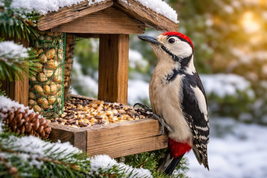 Kā pareizi ierīkot dzeņa “ēdnīcu”