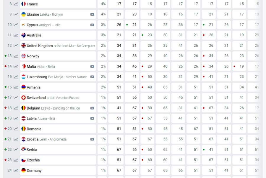 Šis nelielais, bet stabilais kāpums liecina par to, ka interese par mūsu dziesmu ārpus valsts robežām sāk pieaugt. Daudzi konkursa sekotāji un mūzikas eksperti sāk arvien nopietnāk vērtēt mūsu izredzes šajā pavasarī.