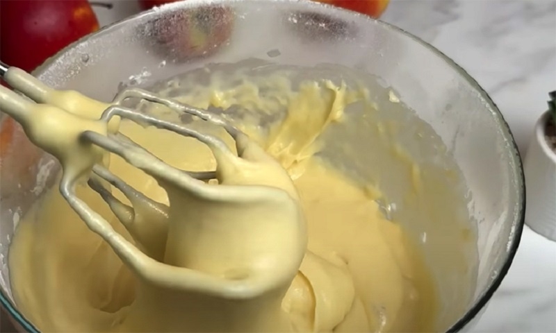 Uzkarsē cepeškrāsni līdz 180°C (350°F) — ir svarīgi, lai pīrāgs sāktu cepties visaugstākajā temperatūrā, lai iegūtu kraukšķīgu garoziņu. Atsevišķā bļodā sajauc olas, cukuru un sāli un, ja vēlaties, pievienojiet vaniļu patīkamam aromātam. Ilgi kult nav nepieciešams: galvenais ir izšķīdināt cukura graudiņus, lai mīkla būtu blīva un bez kātiņiem.