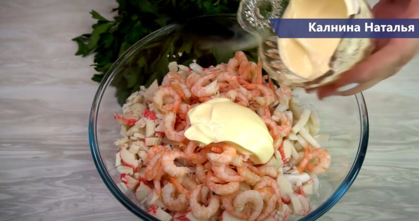 Padomi: Izvēlieties augstas kvalitātes krabju nūjiņas — tās lielā mērā ietekmē ēdiena garšu. Nepārcepiet kalmārus, citādi tie kļūs cieti. Vāriet tieši 1 minūti, pēc tam nekavējoties pārlejiet aukstā ūdenī. Ja izmantojat saldētas jūras veltes, pirms gatavošanas tās pilnībā atkausējiet. Tieši pirms pasniegšanas salātus pārlejiet ar majonēzi, lai novērstu lieko mitrumu no sastāvdaļām.