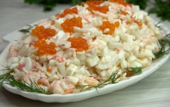 Tie apvieno jūras velšu maigumu, sarkanā kaviāra spilgto akcentu un patīkami sātīgu garšu. Izmēģiniet — tie ir pirmie salāti, kas pazudīs no galda.