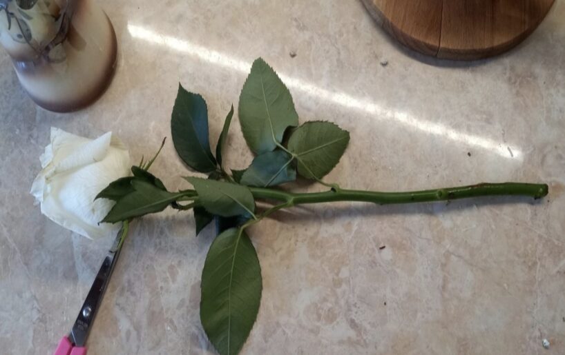 Tūlīt pēc sagriešanas apstrādāju spraudeņus ar ūdeņraža pārskābes šķīdumu (1 ēdamkarote uz 1 litru ūdens). Mērcēju apmēram divas stundas. Šis paņēmiens likvidē sēņu sporas un baktērijas. Bez apstrādes puse spraudeņu jau pirmajā mēnesī kļūst melni un sapūst.