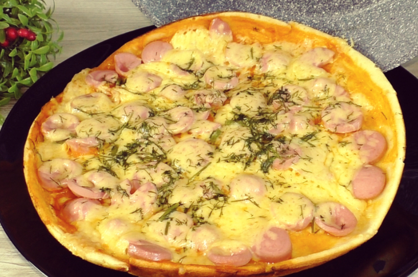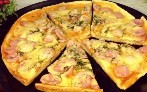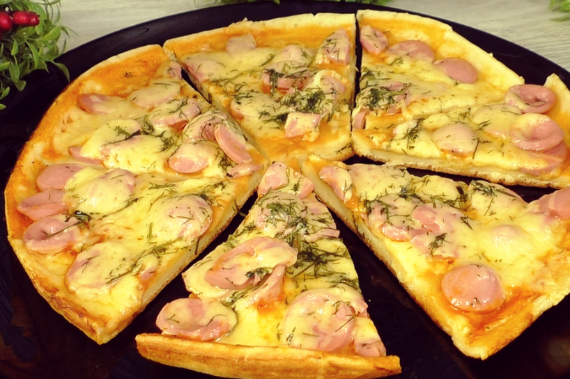 “Slinkā pica” uz pannas. Lai to pagatavotu, nepieciešams pavisam maz laika — nav jāmaisa mīkla un nav jāuzsilda cepeškrāsns