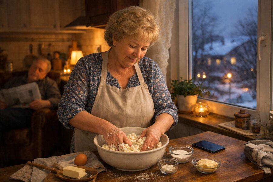 — Beidzot! — iesaucās vedekla, un viņas skatiens uzreiz nokrita uz masīvo trauku vīramātes rokās. Vieglā ēna pārskrēja viņas sejai. — Nāciet iekšā, nometiet mēteļus.