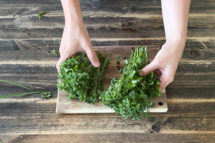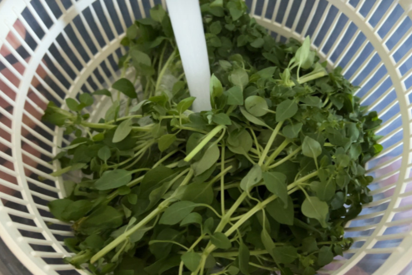 Zaļumus kārtīgi nomazgā aukstā ūdenī.