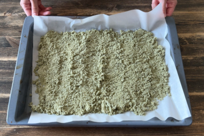Lai gan man ir žāvētājs, šoreiz nolēmu izmantot cepeškrāsni: paņemam cepešpannu, izklājam to ar cepamo papīru un izliekam uz tās mūsu sāli. Ja žāvējat žāvētājā, arī paliktņi ir jāizklāj (vai jāizmanto paliktņi, kas paredzēti pastilas gatavošanai — tie ir bez caurumiem).