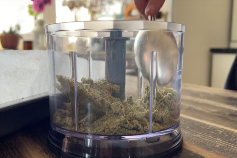 Sāls gandrīz gatava! Tagad to vajag vēlreiz samaļ, jo pēc tekstūras tā pagaidām atgādina akmeni 😀 Atkal liekam blenderī un maļam burtiski 20 sekundes.