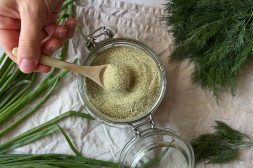 Šai receptei var izmantot jūsu mīļākos dārza zaļumus. Var gatavot sāli ar vienu veidu (piemēram, tikai ar dillēm), vai arī izveidot maisījumu no vairākiem zaļumiem. Man bija dilles, lociņi, pētersīļi un baziliks. Mīlu vasaru ne jau karstuma dēļ, bet ogu un zaļumu dēļ!