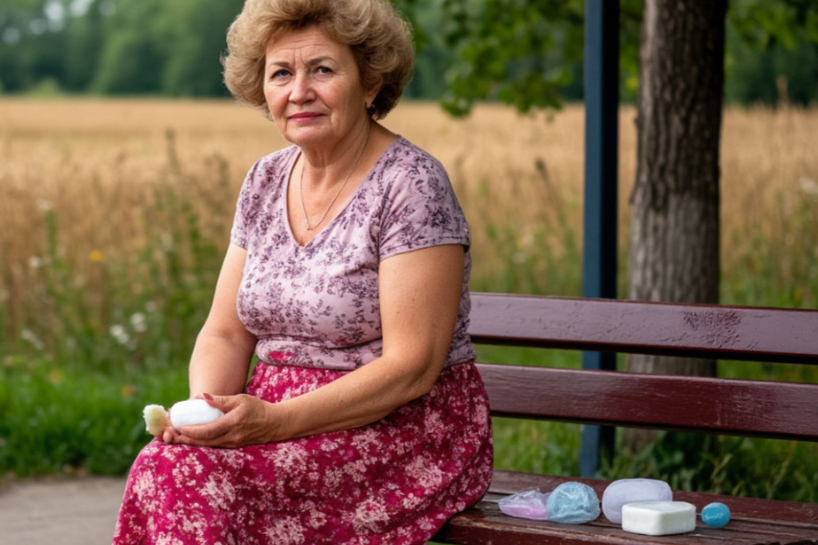 Sievietes pēc sešdesmit zina, ka dzīve prot pārsteigt — ne vienmēr patīkami. Un viņām somā vienmēr ir kaut kas, kas var glābt — no traipa, no kukaiņiem, no nepatīkamas smakas vai vienkārši no iekšējas trauksmes. Mazs ziepju gabaliņš — tas ir kā iekšējā koordinātu sistēma. No malas nemanāms, bet pietiek nonākt nezināmā situācijā — un uzreiz jūti zem kājām stingru pamatu.