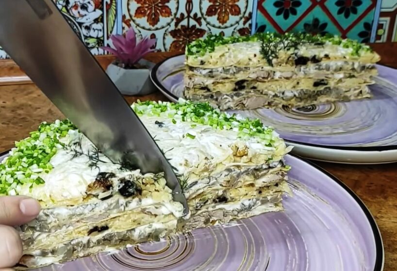 Šis uzkodu “Napoleons” nav tikai skaists ēdiens — tas ir arī ļoti gards un sātīgs. Katrā šķēlītē ir vairākas garšas, kas atkārtojas perfektā līdzsvarā. Ja meklējat ko īpašu svētkiem, šī ir recepte, ko vērts izmēģināt.