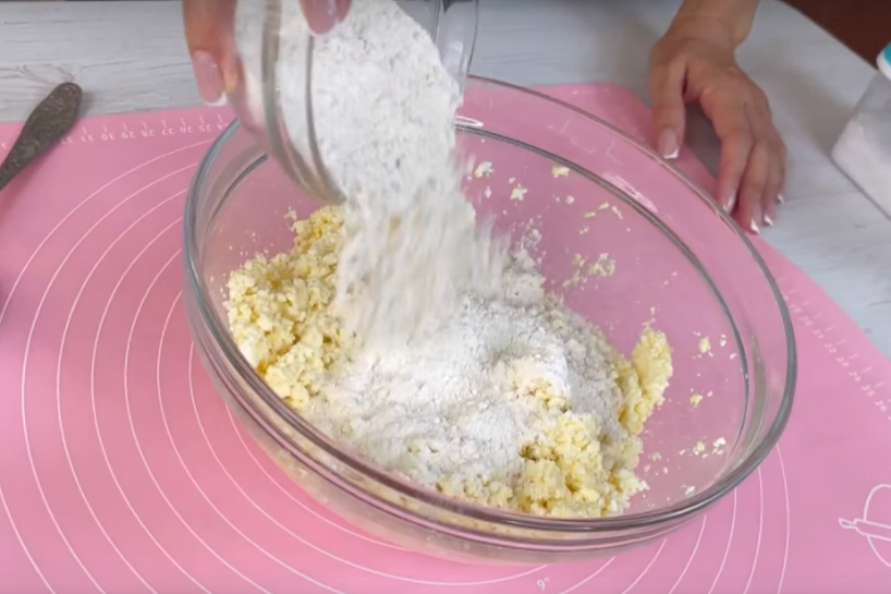 3. Miltu pievienošana: Iesējiet miltus un pievienojiet tos biezpiena masai. Samaisiet, līdz mīkla kļūst viendabīga un nelīp pie rokām.