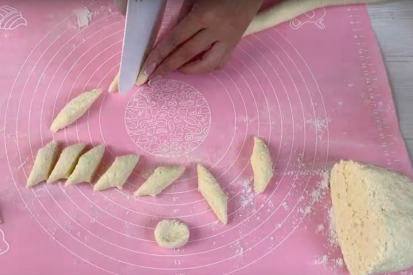 Katrai daļai izrullējiet nelielu desiņu un sagrieziet to mazos gabaliņos. No tiem izveidojiet varenikus, piešķirot vēlamo formu.