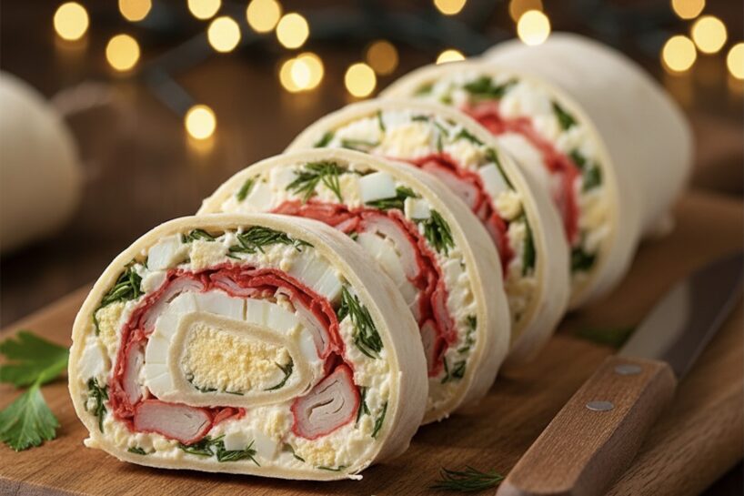 Lavaša ruletes ar krabju nūjiņām un krēmīgu siera slāni