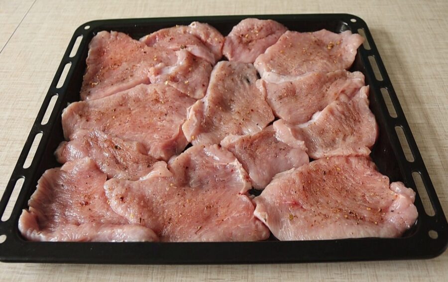 Sāls un pipari ir pašsaprotama lieta, bet es mēdzu pievienot kādu aromātiskāku garšvielu maisījumu. Ja ir laiks, ļauju gaļai pāris stundas iemarinēties, bet, ja mājinieki jau klaudzina ar dakšām pie galda, var gatavot uzreiz.