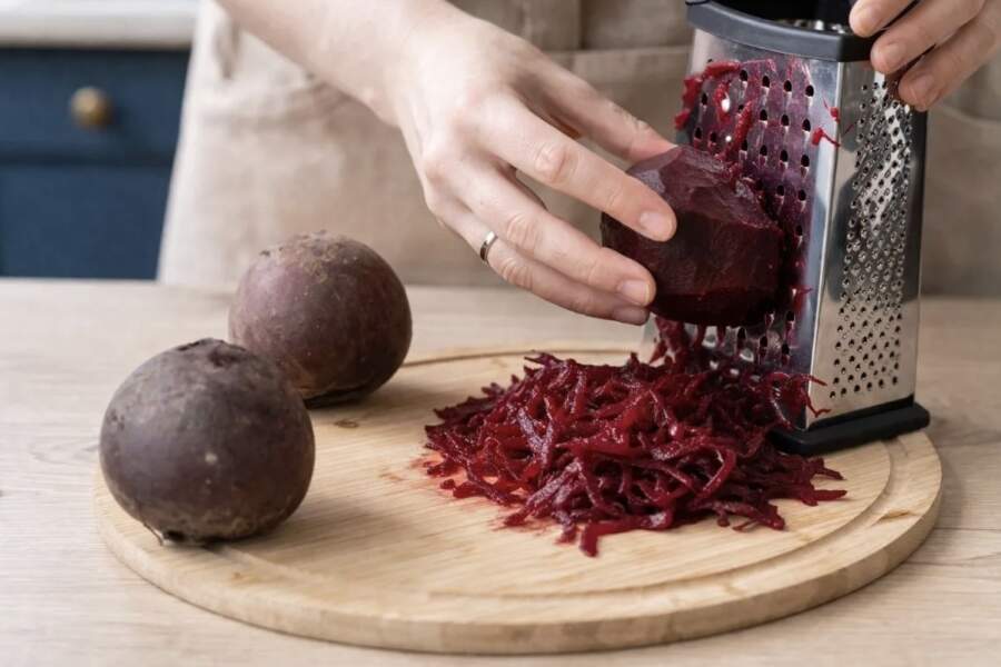 Sākumā ir nepieciešams novārīt bietes, līdz tās ir mīkstas. Kad bietes atdzisušas, tās nomizo un sarīvē uz rupjas rīves vai sagriež ļoti smalkos stienīšos. Tas ir gaumes jautājums, bet rīvētas bietes labāk uzsūc mērci.