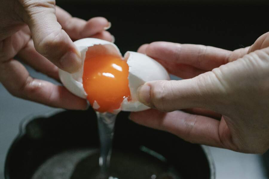 Atsevišķā bļodā sakuļu olas ar cukuru un cieti, līdz masa kļūst viendabīga. Tad karstais piens tievā strūkliņā jālej klāt olu masai, visu laiku strādājot ar putojamo slotiņu. Tas jādara uzmanīgi, lai olas nesarautos gabalos no karstuma. Kad viss sajaukts, lieku katlu atpakaļ uz uguns un vāru, līdz krēms pamatīgi sabiezē.