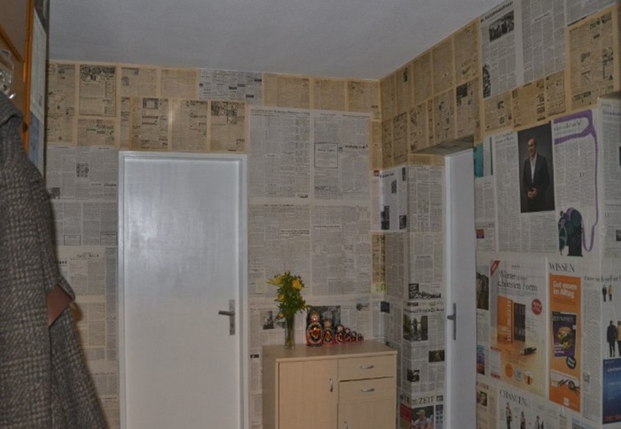 Papildu izolācija: Sienas daudzos projektos ir plānas. Vairāki slāņi ar miltu līmē (klīsterī) piesūcinātām avīzēm pēc izžūšanas pārvērtās par cietu, blīvu pamatni, kas kaut nedaudz, bet tomēr palīdzēja uzlabot telpas akustiku un pat nedaudz aizturēt siltumu.