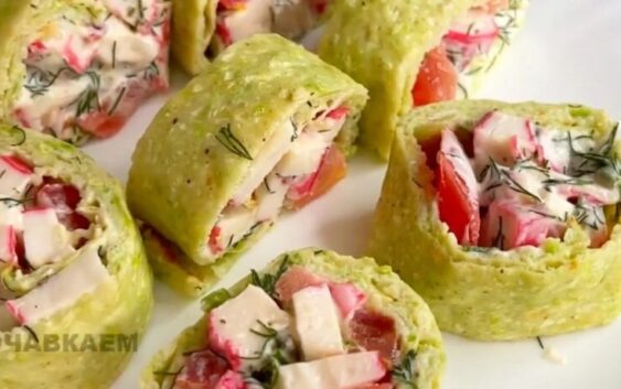 Varat tos pildīt arī ar gaļu, krabju nūjiņām, gurķi — visu, ko varat atrast. Vienkārši sarullējiet tos, sagrieziet šķēlēs, un tie ir gatavi 10 minūšu laikā.