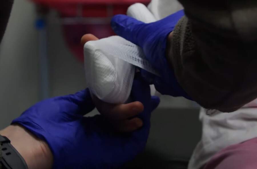 Slimnīcas uzņemšanas nodaļā darbs neapstājas, taču tas ir kļuvis daudz sarežģītāks. Ārstu palīgi un medmāsas turpina sniegt pirmo palīdzību, piemēram, liekot ģipša longetes vienkāršāku traumu gadījumos. Mazajai Aurēlijai, kurai traumēts pirksts, palīdzību var sniegt uz vietas, taču sarežģītākas situācijas personālam rada pamatīgu stresu.