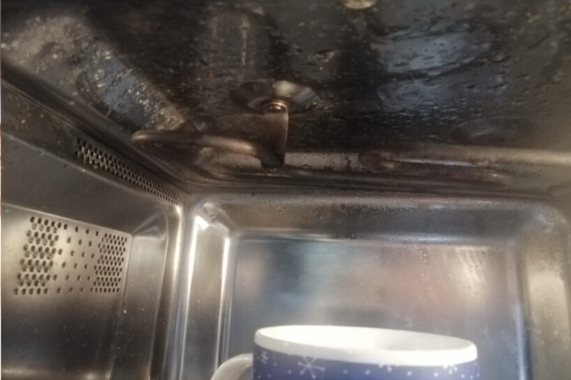 Un pēc nedēļas atkal tas pats. Arī speciālais uzliktnis ēdiena sildīšanai nedod simtprocentīgu aizsardzību pret netīrumiem. Godīgi sakot, dažreiz es vienkārši aizvēru durtiņas un izlikos, ka neko neredzu.