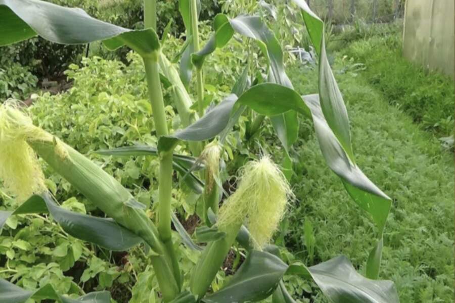 Aizsardzība pret pārkaršanu: Vasaras vidū, kad saule kļūst dedzinoša, pat tomātiem un gurķiem tieši stari var kaitēt. Kukurūzas lapas rada izkliedētu ēnu, pasargājot augļus no “izvārīšanās” tieši uz krūma.