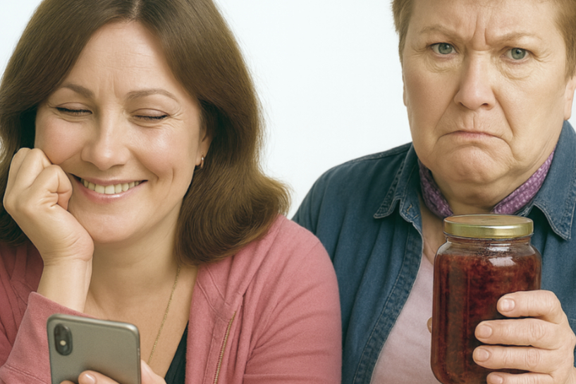 Es noliku viņai krūzi priekšā un apsēdos pretī. Vīra māte uzreiz pastiepās pēc ievārījuma burkas — tās pašas, zemeņu, ko jūlija sākumā izvārīju no dārza ogām. “Mūsu zemenes, mans ievārījums.” Bet vīramātei tās bija “viņas” ogas, “viņas” recepte, “viņas” darbs. Viņa turēja burku rokās kā svētu relikviju.