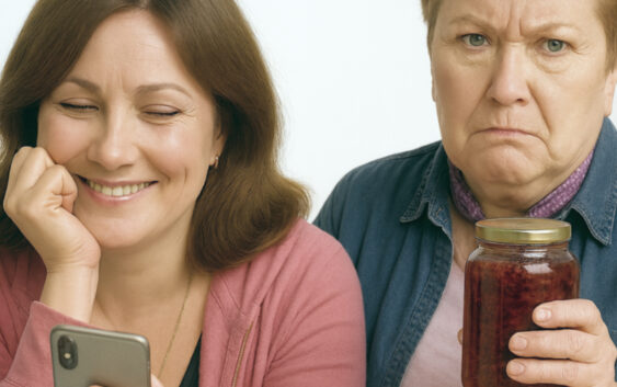 Es noliku viņai krūzi priekšā un apsēdos pretī. Vīra māte uzreiz pastiepās pēc ievārījuma burkas — tās pašas, zemeņu, ko jūlija sākumā izvārīju no dārza ogām. “Mūsu zemenes, mans ievārījums.” Bet vīramātei tās bija “viņas” ogas, “viņas” recepte, “viņas” darbs. Viņa turēja burku rokās kā svētu relikviju.