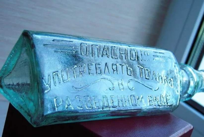 Trīs asas šķautnes, īss kakliņš ar metāla skrūvējamo vāciņu un rievots korpuss – tie bija askētiski, bet nepārprotami signāli. Šajās pudelēs glabājās galda etiķis. Šķidrums, kas bija neaizstājams marinēšanas sezonā, taču bīstams, ja to nejauši malkotu ūdens vietā.