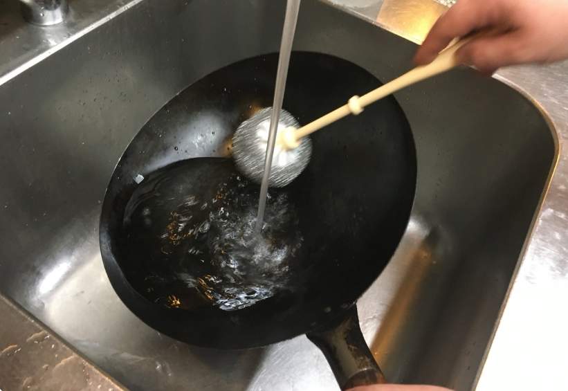 Vienkārša noskalošana ar aukstu ūdeni šos līdzekļus pilnībā nenoņem. Pirms pirmās cepšanas ieteicams pannā ieliet ūdeni un ļaut tam kādu brīdi aktīvi pavārīties. Tas palīdzēs likvidēt rūpnieciskos nosēdumus un padarīs pannu drošu lietošanai. Tikai pēc šādas “pirmās vārīšanas” panna ir gatava pirmajai eļļas kārtai un produktiem.