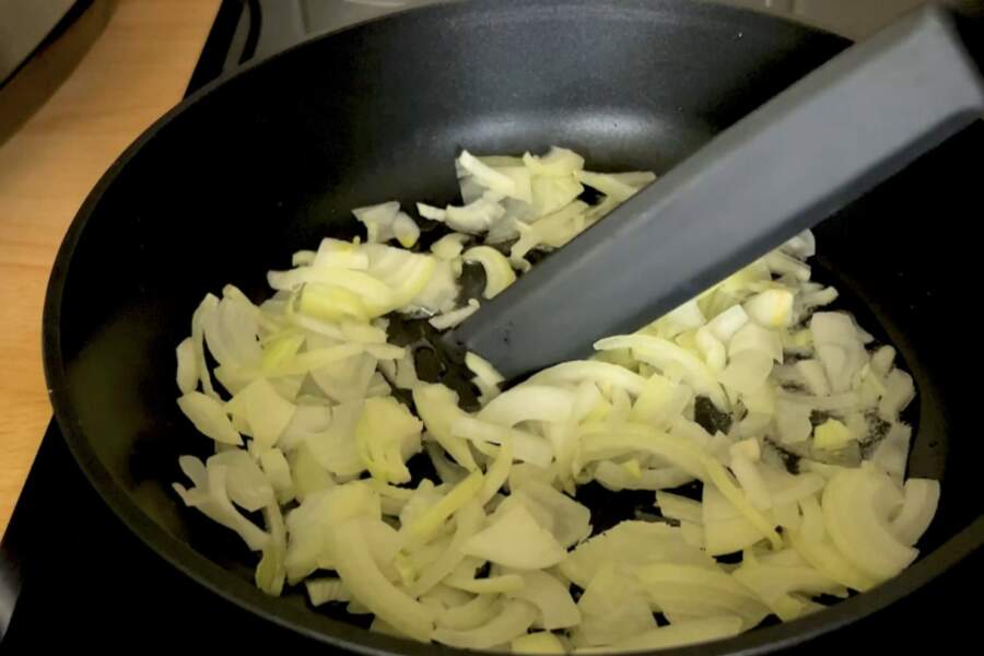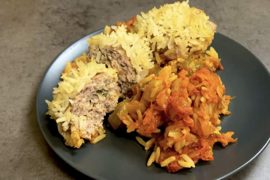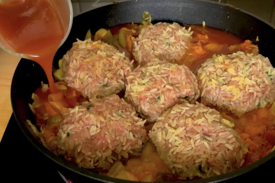 Rīsus pirms pievienošanas gaļai nevajag vārīt līdz galam; tiem jābūt jēliem vai tikai nedaudz applaucētiem, lai tie “augtu” tieši sautēšanas laikā.