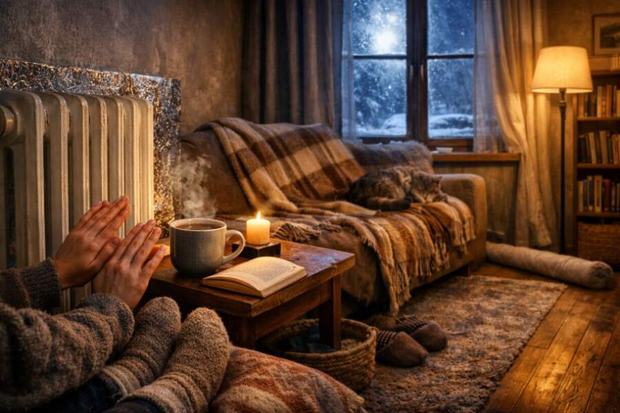 Kāds rīdzinieks, kurš dzīvo vecā pirmskara mājā ar augstiem griestiem, dalījās savā pieredzē. Viņš nolēma netērēt milzu summas par papildu sildītājiem, bet gan iegādājās pavisam vienkāršu lietu – atstarojošo izolācijas foliju, ko parasti izmanto celtniecībā vai kempingos. Viņš to pielīmēja aiz radiatoriem, palika zem paklāja un pat piestiprināja nelielu gabalu pie vecajām ārdurvīm. Rezultāts bija pārsteidzošs – termometrs rādīja tikai par pāris grādiem vairāk, taču sajūta telpā mainījās pilnībā. Pazuda tā griezīgā “caurvēja kailuma” sajūta, un istaba kļuva mājīga.