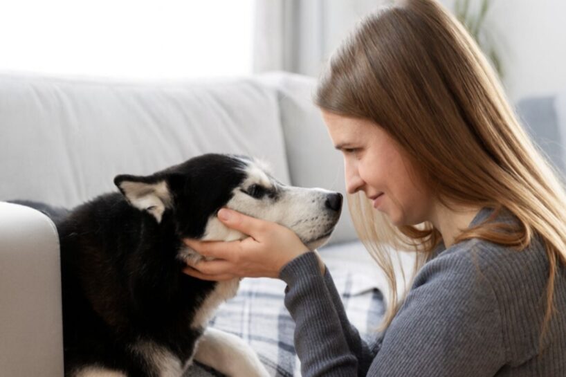 Runājiet ar viņu maigā balsī, mirkšķini biežāk, nolieciet galvu sāņus un neuzspiediet acu kontaktu. Suns sajutīs jūsu mieru — un atbildēs ar to pašu.