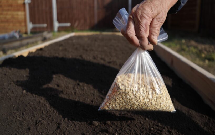 Un, ja virsū uzliek mulču — kaut vai sienu, kaut vai salmus —, tad auzu pārslas sāks darboties vēl ātrāk. Mikroorganismiem taču nepieciešams mitrums un siltums, un mulča rada ideālu mikroklimatu.