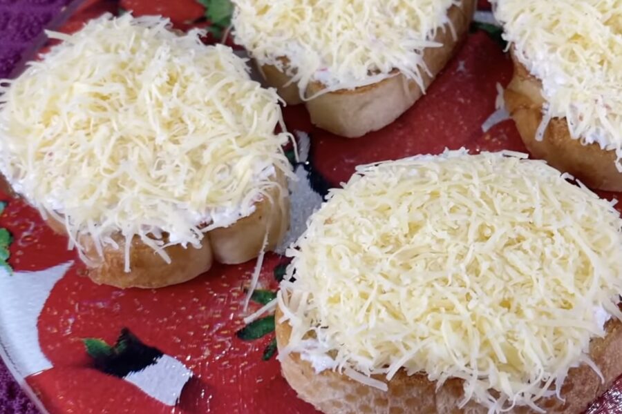 Tad nāk kārta sieram. Es izvēlos kādu no klasiskajiem Latvijas sieriem, jo tie labi kūst. Sieru rīvēju uz rupjās rīves un bagātīgi pārkaisu pāri katrai maizītei. Nevajag sieru piespiest ar rokām. Lai tas paliek gaisīgs un brīvs, tad arī sanāks tas pūkainais efekts, par ko visi tā brīnās.