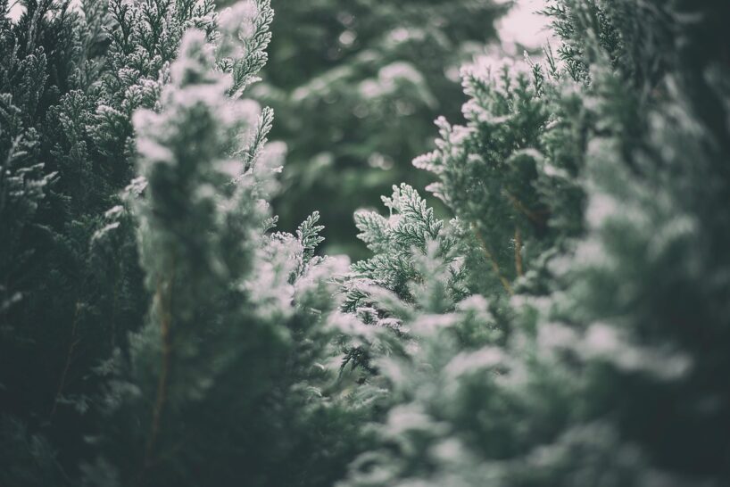 Eglīšu zari, kas noliekušies pie zemes, — sniegputeni vai vētru.