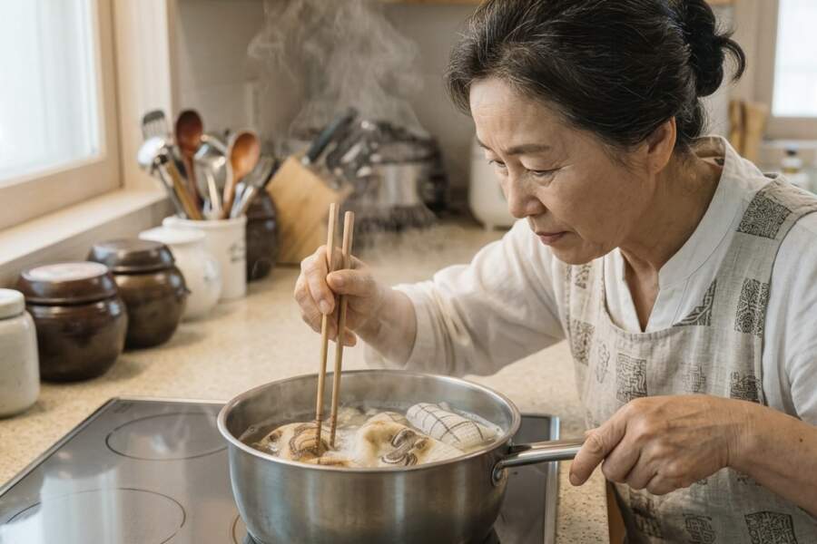 Dvieļi virtuvē saskaras ar taukiem, dūmiem un dažādiem šķidrumiem. Laika gaitā šīs daļiņas sakrājas dziļi audumā un parastais veļas mašīnas cikls nespēj tās pilnībā izskalot. Tāpēc dvieļi kļūst cieti un nepievilcīgi. Korejiešu metode strādā savādāk, jo karstumā pievienotās vielas reaģē ar taukiem un atdala tos no auduma.