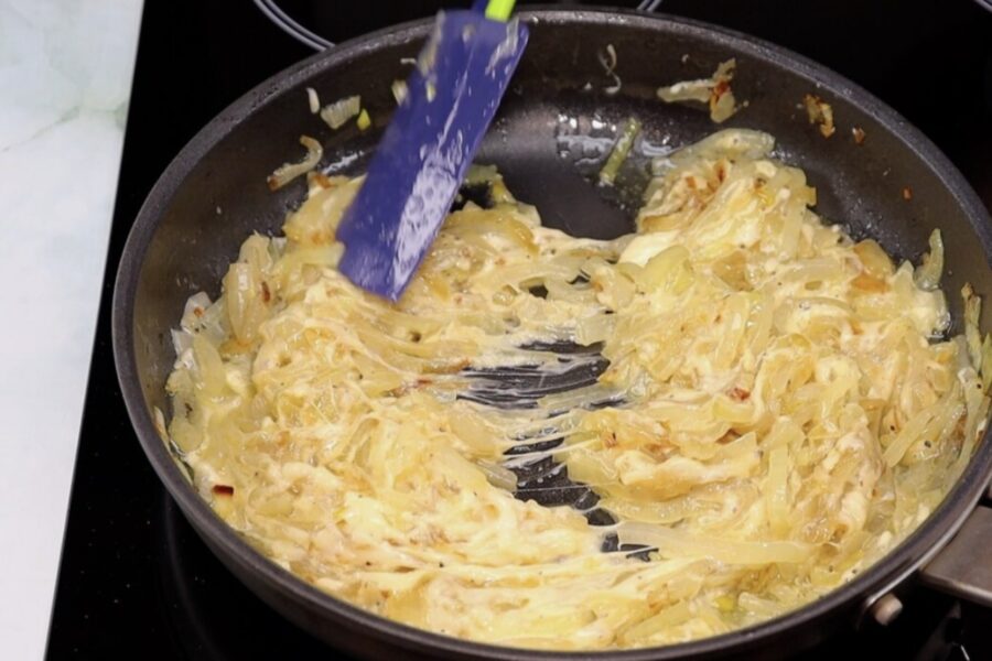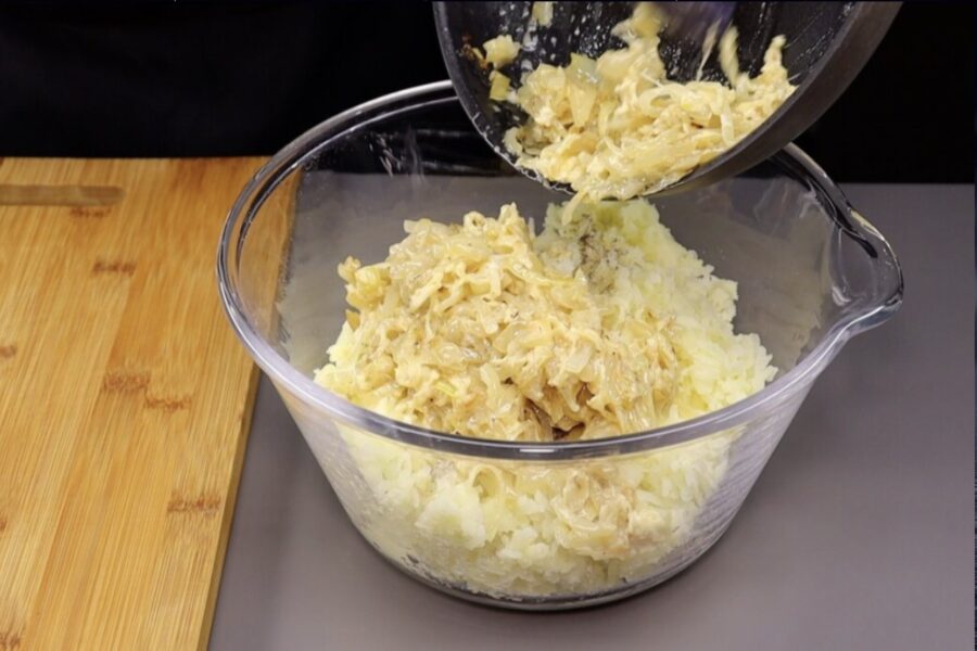 Process sākas ar kartupeļu mizošanu un vārīšanu sālsūdenī. Svarīgi ir tos nepārvārīt – pietiks ar aptuveni 15 minūtēm pēc vārīšanās sākuma. Kamēr kartupeļi dziest, pievēršas sīpolu sagatavošanai. Tos sagriež plānās ceturtdaļās un apcep eļļā kopā ar garšvielām, līdz tie kļūst mīksti un caurspīdīgi. Pašās beigās sīpoliem pievieno sviestu un rīvēto sieru, ļaujot visam izkust vienmērīgā masā.