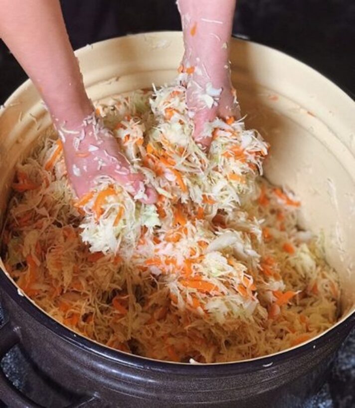 Smalki sagrieziet kāpostus; rupji sarīvējiet burkānus. Atsevišķā traukā izšķīdiniet ūdenī sāli un cukuru, lai pagatavotu sālījumu. Ievietojiet kāpostus un burkānus burkā vai keramikas traukā, cieši sablīvējiet un pārlejiet ar sālījumu. Virsū uzlieciet kāposta lapu, lai kāposti nekļūtu tumši. Pārklājiet kāpostus ar marli un atstājiet siltā vietā uz trim dienām. Ja sālījums sāk sarukt, pievienojiet vēl nedaudz ūdens un sāls. Pēc trim dienām kāpostiem var uzskrūvēt vāku un novietot vēsā vietā.